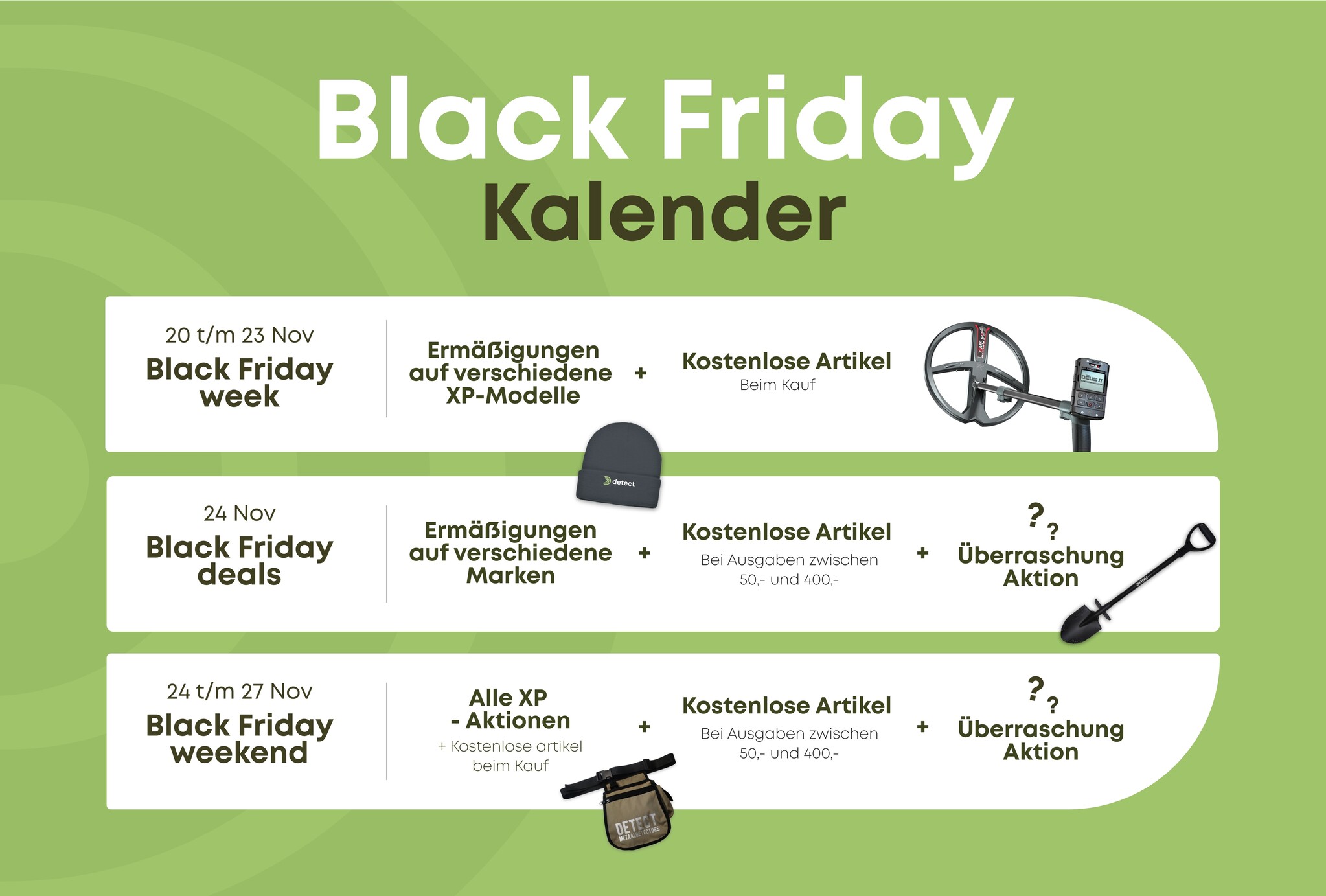 Nutzen Sie die vielen Black Friday Deals bei Detect für verschiedene Produkte und Marken. Im untenstehenden Kalender finden Sie eine kleine Vorschau auf die Angebote während der Black Friday Tage.